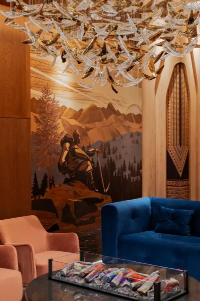 Черты современного стиля проявляются в присутствии технологий. Так, в лобби отеля размещен огромный LED-экран, на котором демонстрируются фильмы о красотах Колымского края, редкой по улову рыбалке и настоящей охоте.