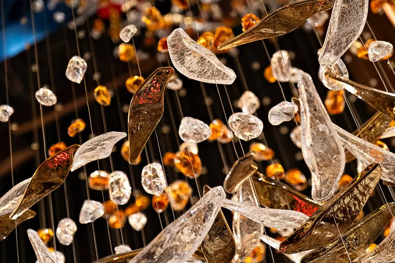 В качестве декора для панно использована сложная техника маркетри, все рисунки и орнаменты взяты из фольклора местных народностей и определяют это место (то есть территорию). Стоит отметить очень квалифицированную работу местной столярной мастерской.