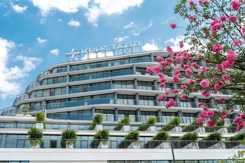 В этот день санаторий «Кристалл» принял первых гостей. Санаторий находится он рядом с Тисо-Самшитовой рощей и включает 354 номера. Стоимость объекта 12 млрд рублей. Инновационный медицинский центр санатория площадью 5000 кв.м, оснащенный современным оборудованием для бальнеологии,грязелечения, генетических и иммунологических исследований, вмещает около 80 медицинских кабинетов и свыше 90 медицинских специалистов. Архитектура «Кристалла» вписана в природный рельеф — здание следует естественным изгибам местности. На территории есть зеленые маршруты для терренкура и просторный атриум с зимним садом, где представлено 20 видов тропических растений.