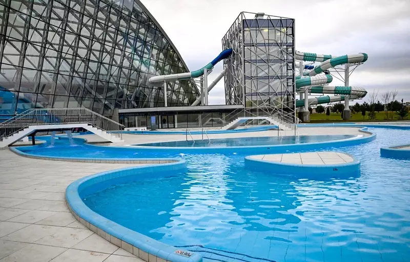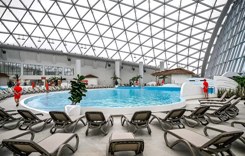 Уникальна конструкция кровли аквапарка: она создает эффект открытого неба. Два купола покрыты специальной пленкой, пропускающей естественный солнечный свет и ультрафиолет, что позволяет загорать даже зимой. Сообщение будет дополнено фотографиями! https://www.xn-…EMENT_ID=237254
